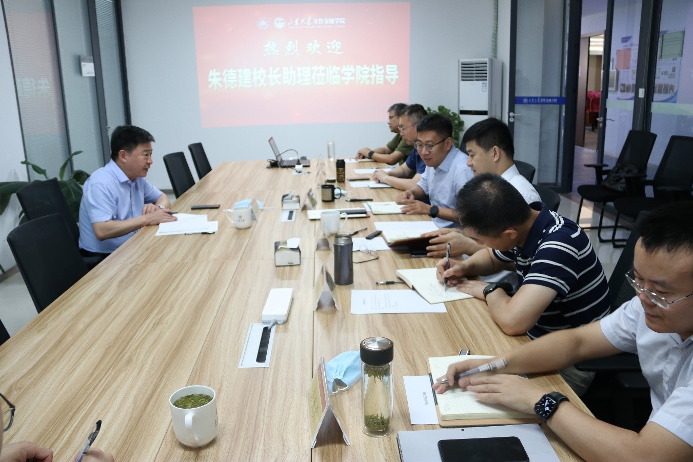 7月8日上午,山东大学校长助理朱德建到齐鲁交通学院调研,与学院领导班子座谈。
