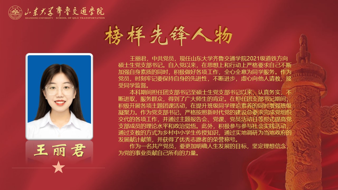 为进一步总结宣传优秀共产党员和党支部典型事迹,发挥榜样示范引领作用,齐鲁交通学院以“喜迎党的二十大 创新聚力当先锋”为主题,围绕高校发挥人才培养、科学研究、服务社会、文化传承与创新功能,发现总结和宣传学习在推进“十大创新”工作中涌现出的共产党员先进典型,选树身边榜样人物,营造浓厚学习氛围,把党员身份亮出来、先进标尺立起来、先锋形象树起来,使“强国复兴有我”“奋斗正当时”的思想观念深入人心,引导激励全院党支部和广大党员凝心聚力、攻坚克难,以优异成绩迎接党的二十大胜利召开。
