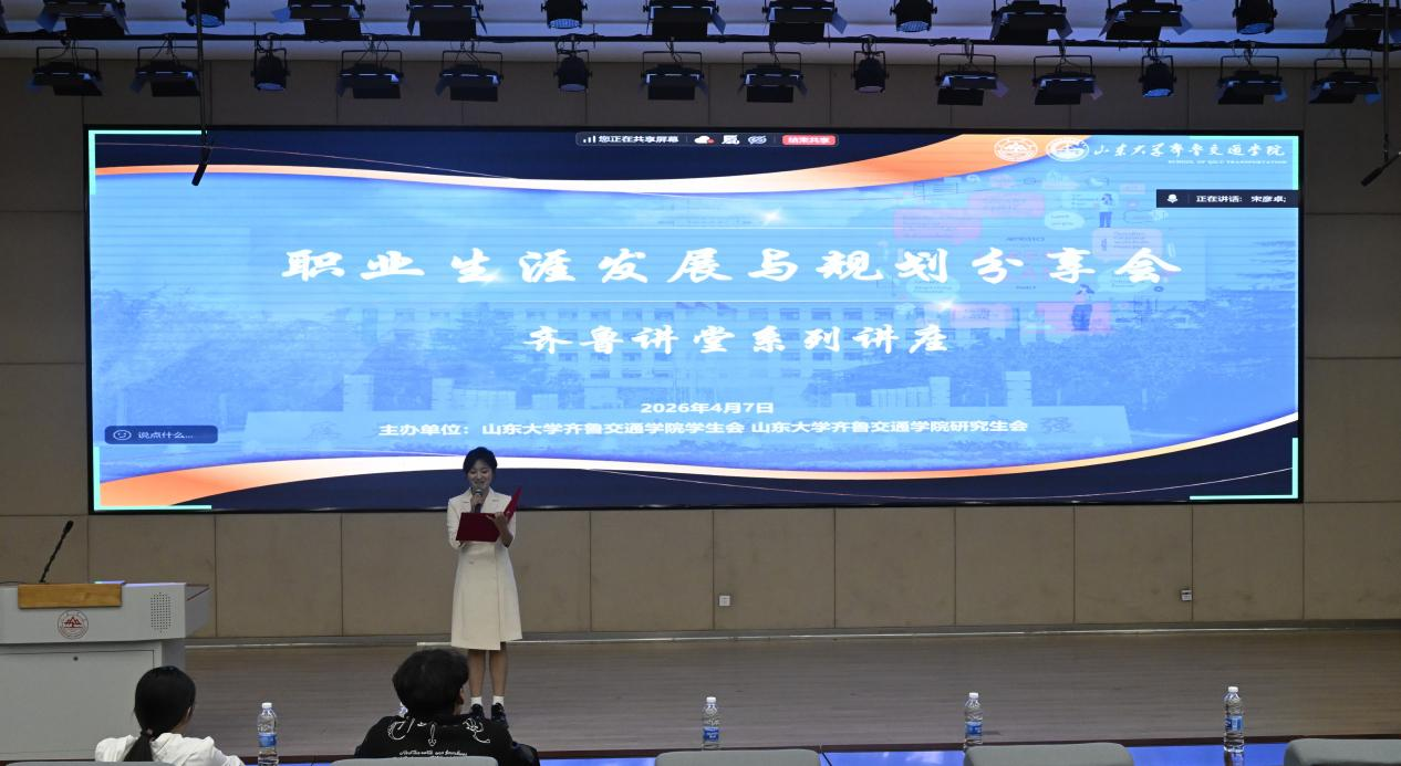 为深入践行山东大学“学在山大,快乐成长”育人理念,帮助本科生明晰成长方向、科学规划大学生涯,4月7日,齐鲁交通学院举办“齐鲁讲堂——职业生涯发展与规划分享会”,特邀金涛、王子骋、胡明洁、王可莹、陈翊萱五位学长学姐带来全维度经验分享,本科生辅导员宋彦卓参加。