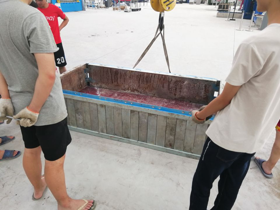 上午九点,团队成员在实验大厅集合,开始进行实验模具的安装。在胡杰和刘进佩学长的指挥下,团队成员分工明确,整个过程紧张有序的进行。安装过程中,一些很重的零件的搬运过程需要使用起重机,学长多次强调在起吊过程中一定要远离设备、注意安全。经过这些天的磨合,安装过程中,团队成员默契的进行模具组件的搬运和螺丝的安装,整个过程以极快的速度完成。中午十二点,“多功能地下工程施工全过程演化数控模拟系统”实验模具的安装过程基本完成,等待下一步的混凝土浇筑。
